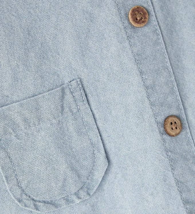 Mooi spencer van Lil’ Atelier in lichtblauw met fijne hout knoppen aan de voorkant.