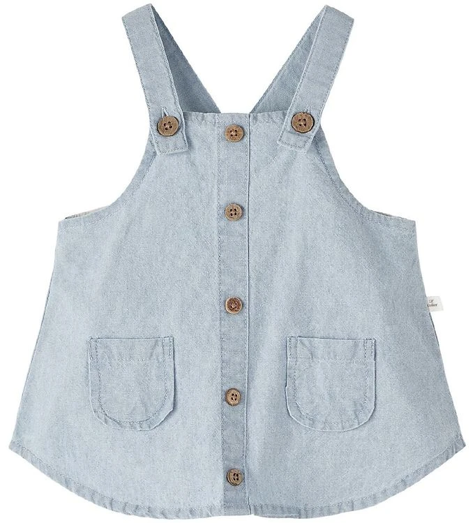De Lil’ Atelier spencer hebben smalle schouderbandjes die aan de voorkant open en dicht gaan met een knoopje. De Jurk heeft fijne sierknopen aan de voorkant en aan elke kant een open zak. Aan de onderkant heeft de jurk een afgeronde snit, wat zorgt voor een goede wijdte.